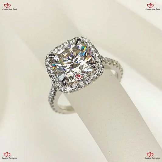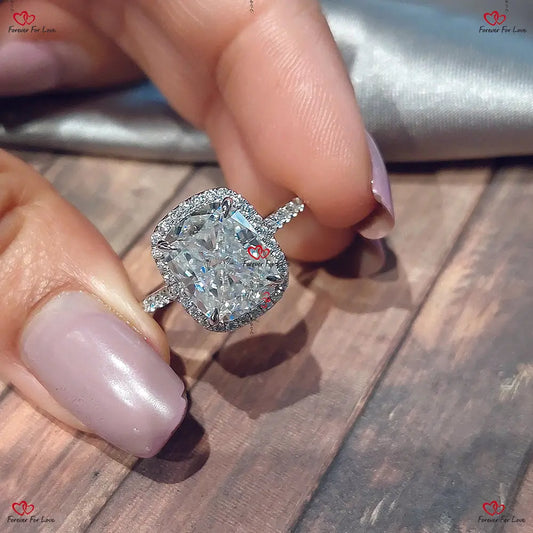 Bague de fiançailles en moissanite taille coussin - Solitaire taille radiant à halo caché en or massif