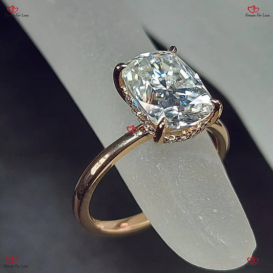 Bague de fiançailles en moissanite taille coussin avec halo caché – Solitaire taille coussin en or massif