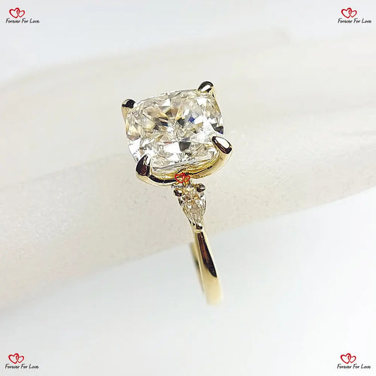Bague solitaire en or avec moissanite taille coussin ancienne | Bague de fiançailles Forever Moissanite