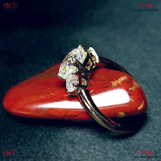 Bague de fiançailles en moissanite taille coussin | Design trilogie | Pierres latérales rondes | Bague certifiée