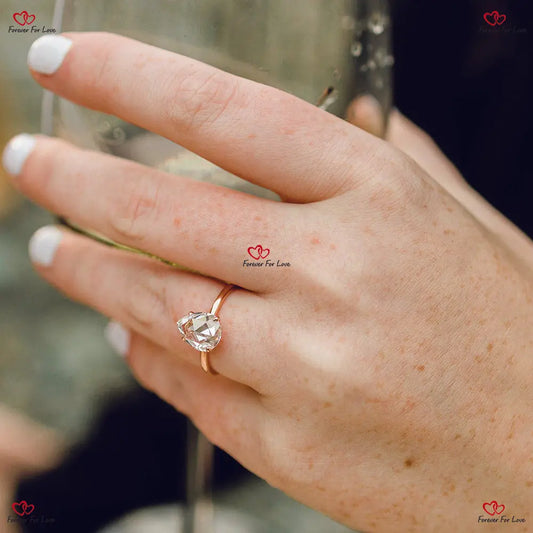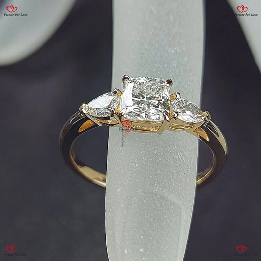 Bague de fiançailles en diamant | Diamant taille radiant avec diamants latéraux en forme de poire | Demande en mariage