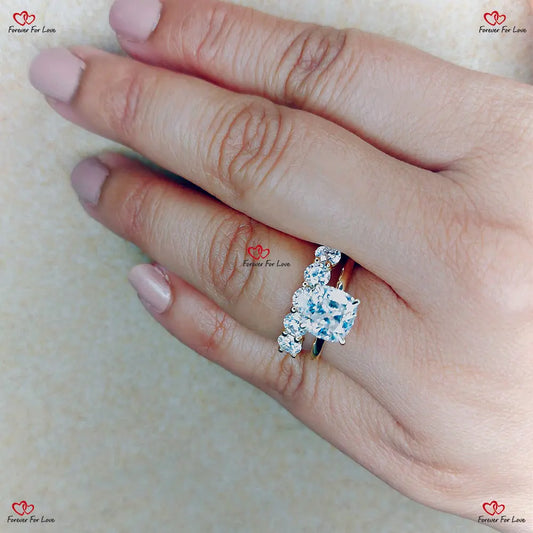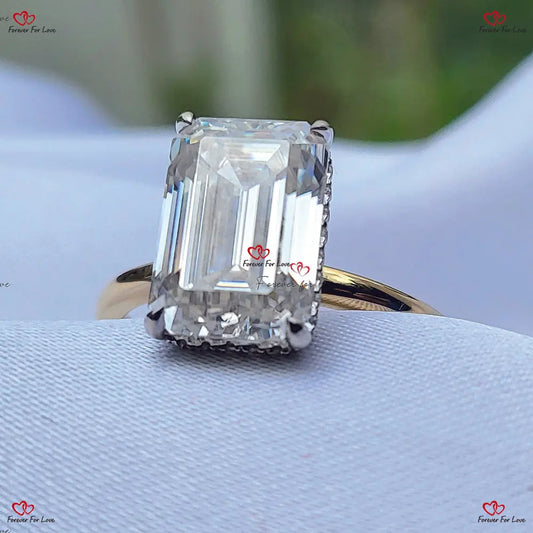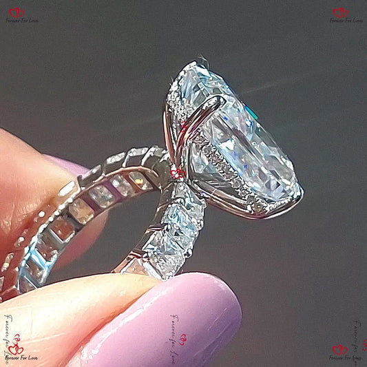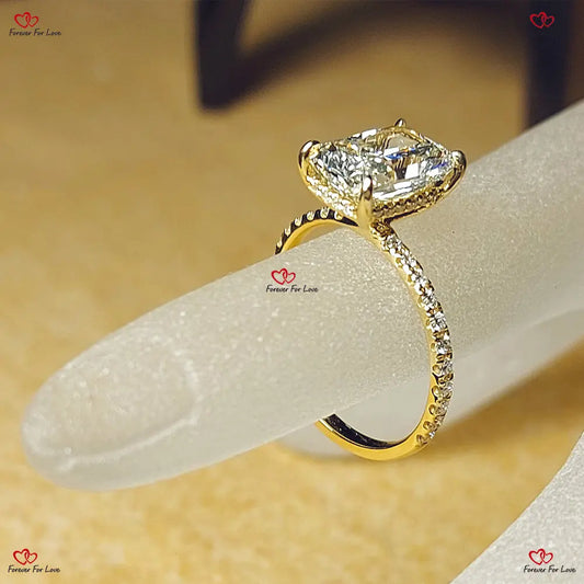 Bague de fiançailles en moissanite taille coussin hybride avec halo caché
