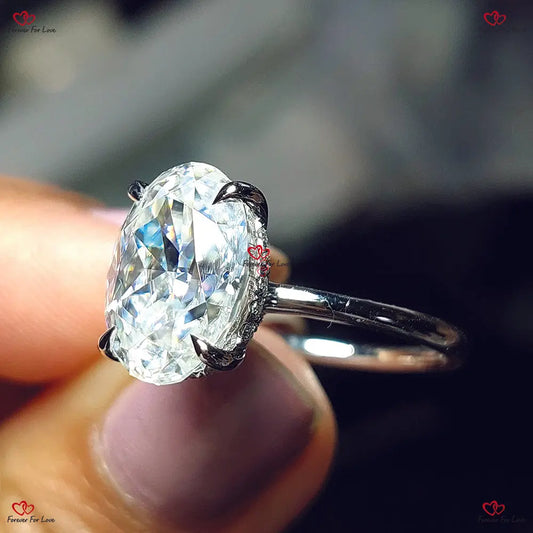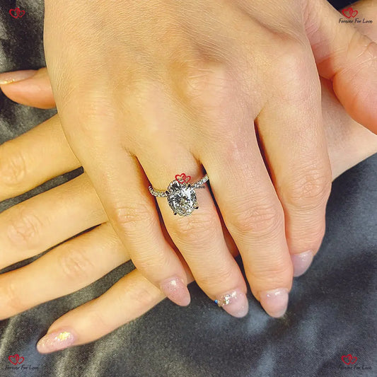 Bague de fiançailles en moissanite ovale à glace pilée hybride | Double halo caché | Bague inspirée de Haley Bieber