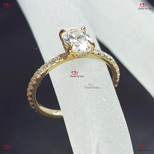 Bague de fiançailles en diamant ovale certifiée IGI avec pierres décoratives