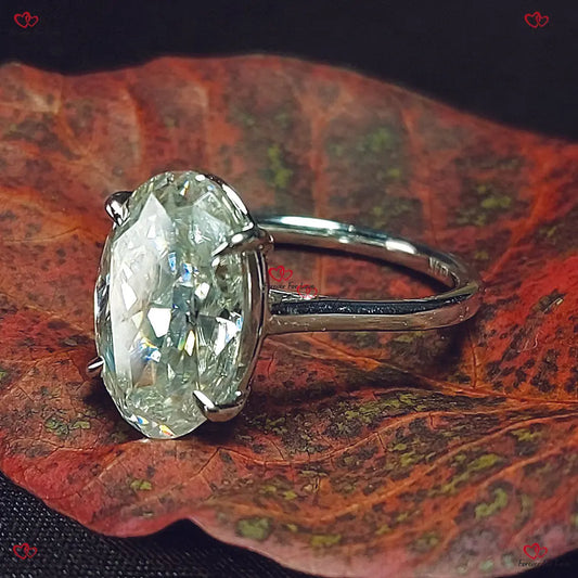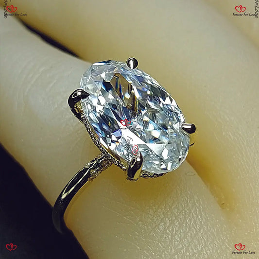 Bague de fiançailles en moissanite à taille ovale | Halo caché |/ Or blanc