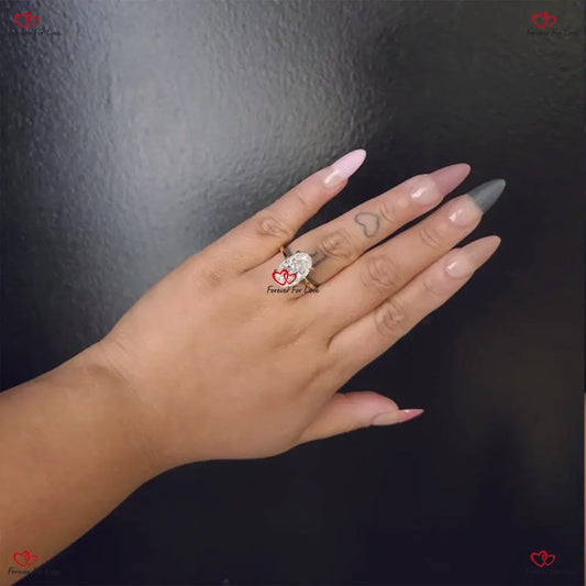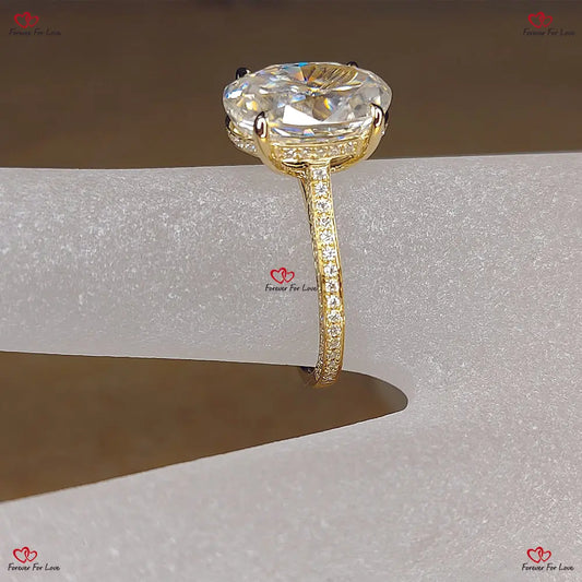 Bague de fiançailles ovale | Moissanite taille ovale en glace pilée | Anneau épais | Bague halo cachée