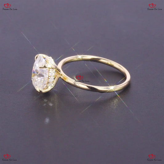 Bague de fiançailles ovale avec halo caché sur bande en or massif