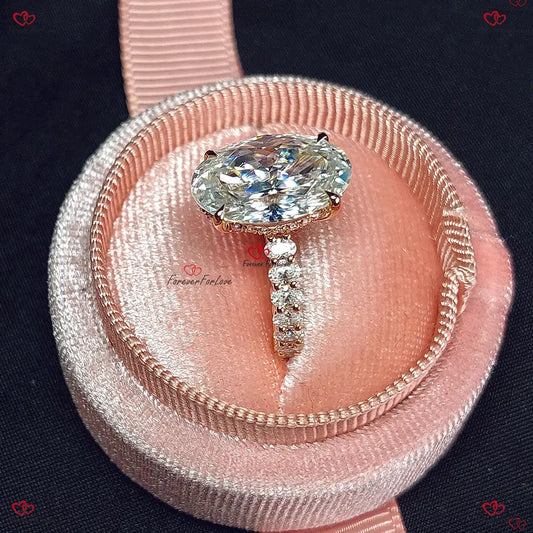 Bague de fiançailles en diamant/diamanite ovale avec bande pavée