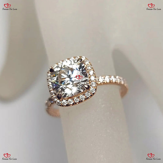 Bague de fiançailles en or rose avec moissanite taille coussin de 2 carats