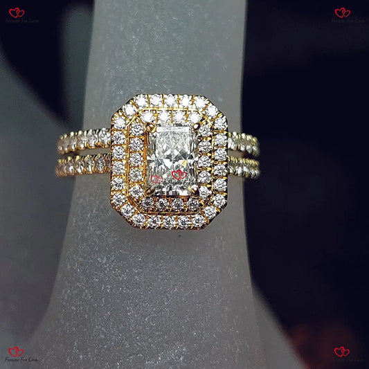 Bague de fiançailles en diamant de laboratoire de 2 carats à taille radiante | Bague de fiançailles halo | Ensemble de mariage en diamant de laboratoire pour femme