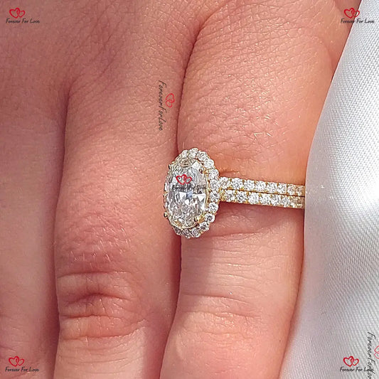 Bague de fiançailles solitaire en diamant de laboratoire à taille ovale certifiée IGI D/VVS2 de 2 carats au total | Bague de fiançailles avec halo caché et bande de diamants ronds assortie | Or