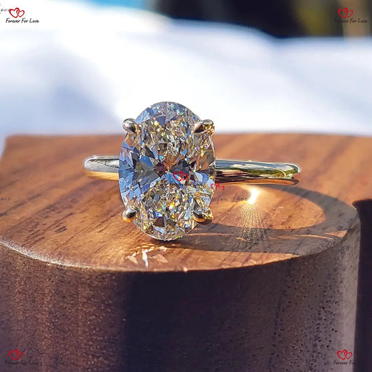 Bague solitaire ovale FVS1 de 2,5 carats, bague de fiançailles en or jaune avec diamant certifié, bague en diamant créée en laboratoire sans conflit.