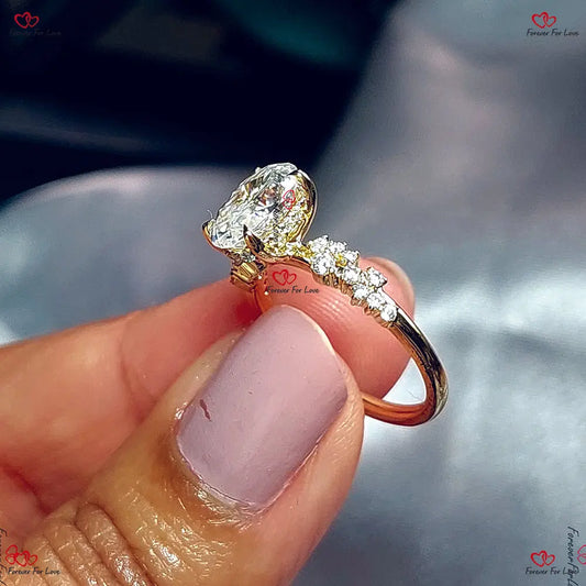 Bague de fiançailles en or massif avec diamants en grappe et moissanite ovale de style hybride de style vintage unique