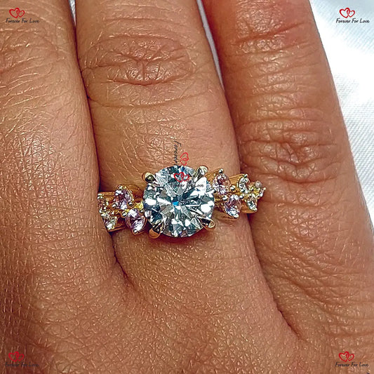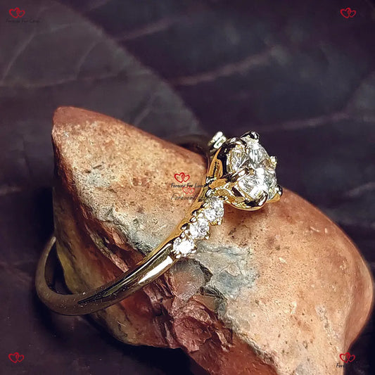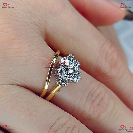 Bague de fiançailles unique vintage avec diamant rond créé en laboratoire | Bague de fiançailles ronde en grappe créée en laboratoire