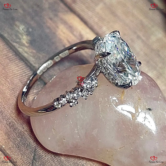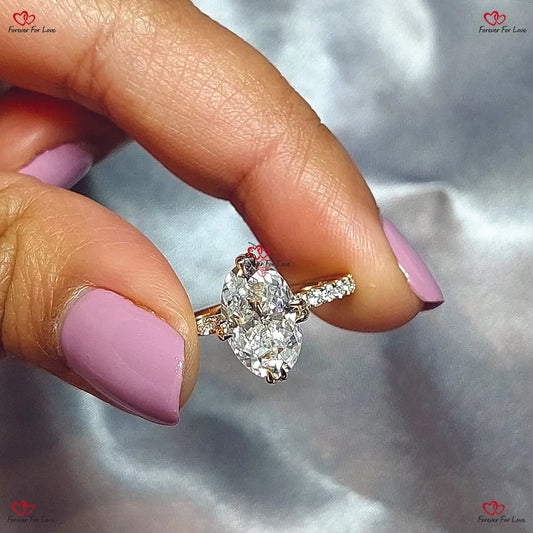 Bague de fiançailles unique en moissanite ovale taille brillant de style vintage | Pierres latérales en diamant marquise | Or massif