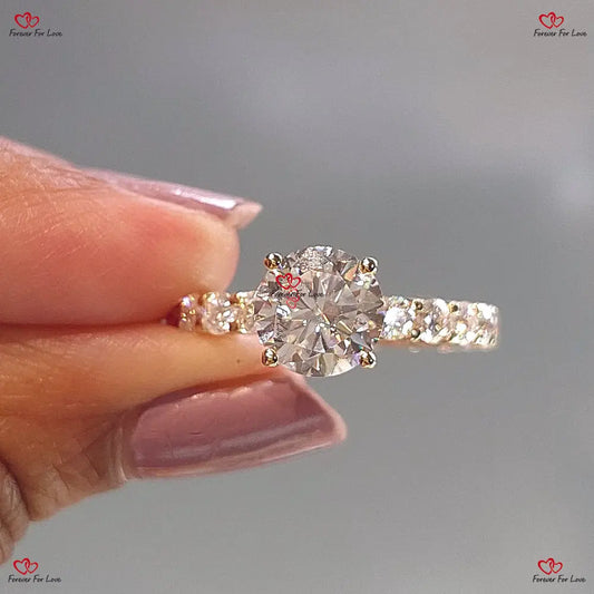 Bague de fiançailles vintage 2 1/ Round Forever Moissanite en or massif Bague de fiançailles Art Déco à taille ronde