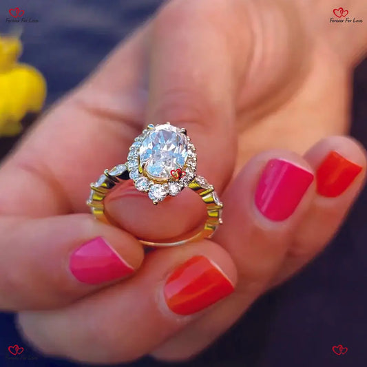 Bague de fiançailles unique de style vintage avec diamants ovales et marquise en moissanite | Bague de fiançailles avec halo de diamants