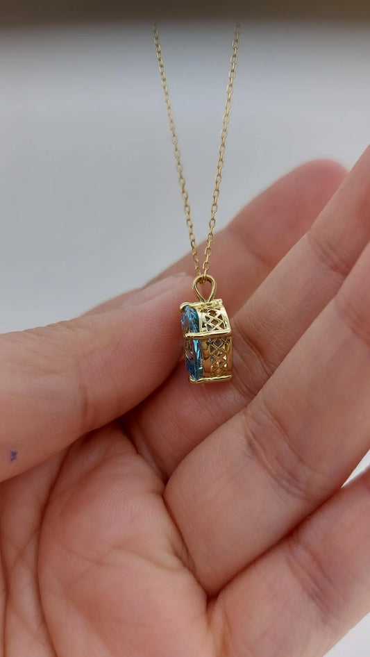 Ocean Dream | 4 Carat Cushion-Cut Aquamarine Pendant Necklace