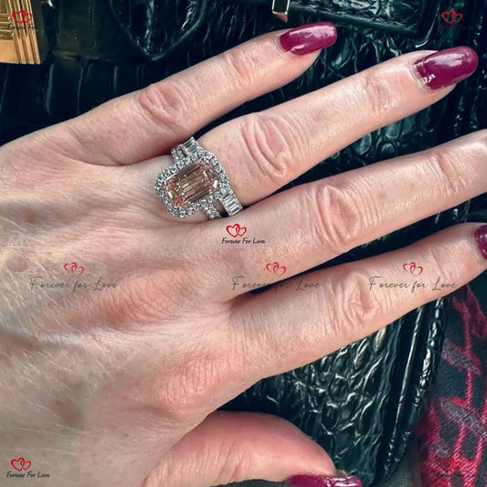 Bague de fiançailles avec diamant taillé en émeraude rose créé en laboratoire - Bague halo en diamant certifiée IGI