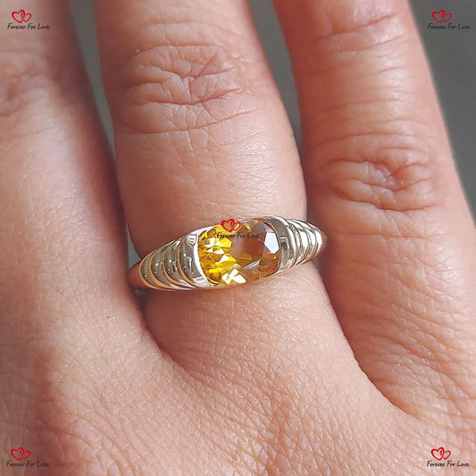Bague chevalière en or massif avec pierre de naissance en citrine pour femme