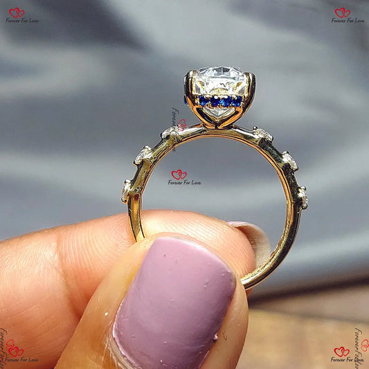 Bague de fiançailles ovale unique | Moissanite à glace pilée en or massif | Conception de pierre de naissance à halo caché
