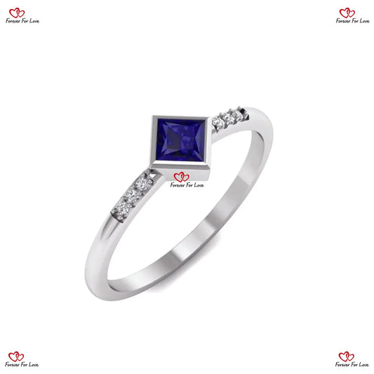 Bague de fiançailles en or blanc avec saphir bleu naturel et diamant