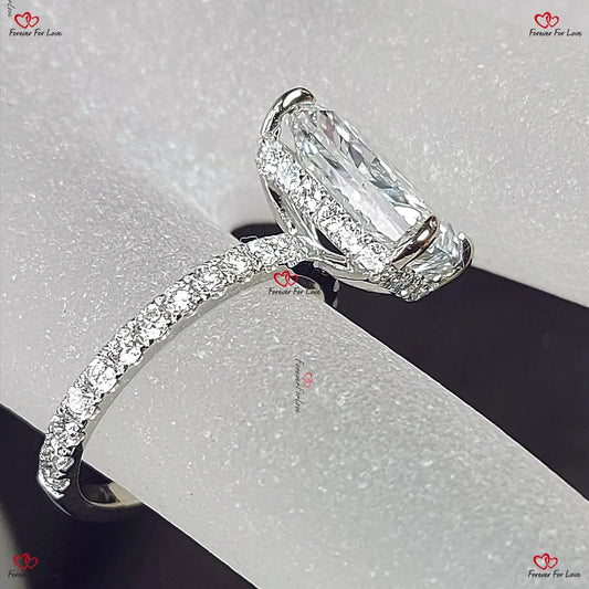 Bague de fiançailles en diamant de laboratoire de 2 carats à taille radiante | Bague de fiançailles halo | Ensemble de mariage en diamant de laboratoire pour femme