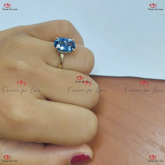 Bague unique avec tanzanite naturelle à taille ovale et accents de diamants