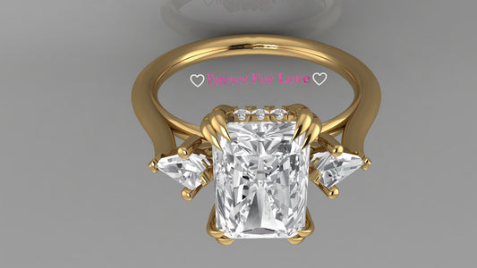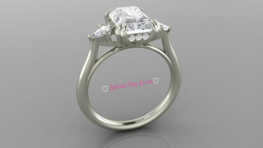 Radiant Center Stone with Pear Side Stones Three-Stone Engagement Ring