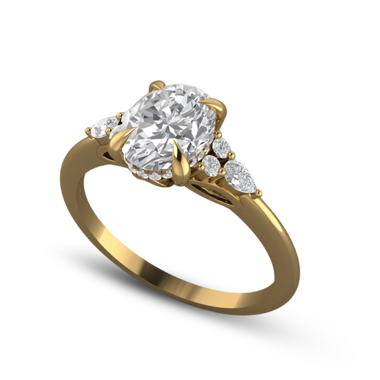 Bague de fiançailles ovale vintage, design unique en grappe en or massif