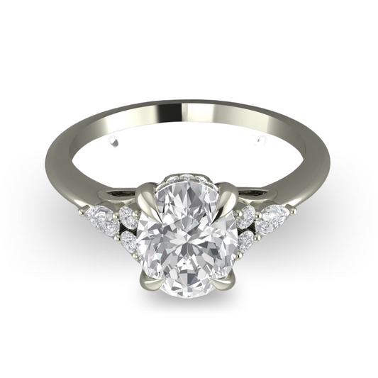 Bague de fiançailles incolore hybride à pavé ovale Distance