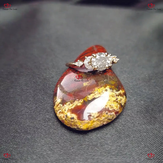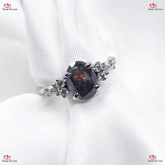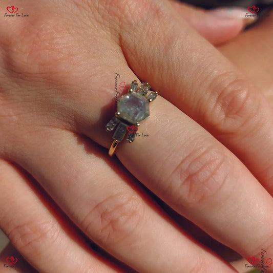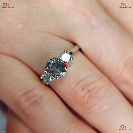 Bague de fiançailles vintage en diamant brut avec diamants hexagonaux sel et poivre