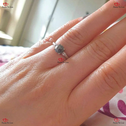 Bague de fiançailles vintage avec diamant rond brut - Sel et poivre