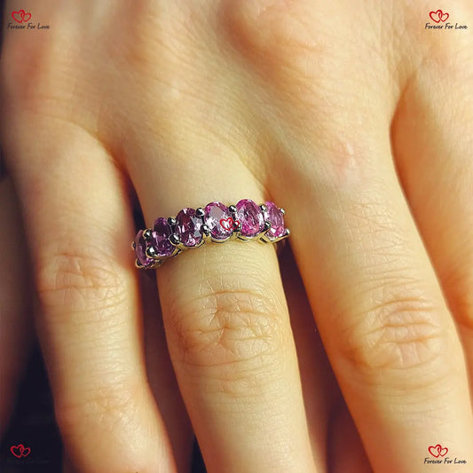 Bague d'éternité en or massif avec saphir rose naturel de Ceylan