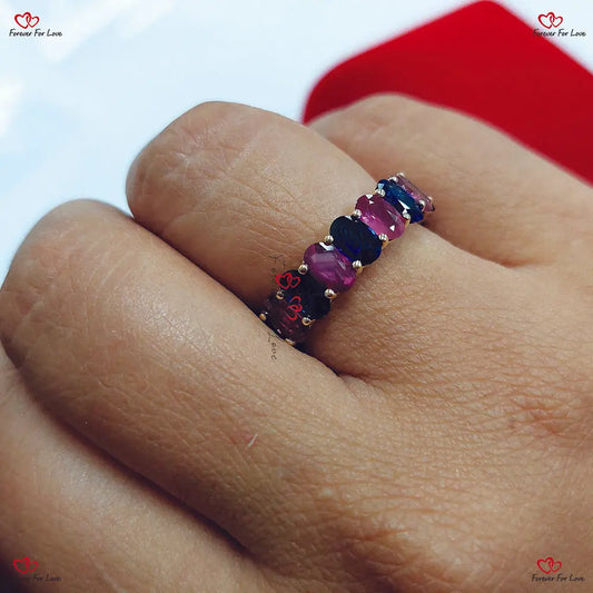 Bague de fiançailles antique en saphir unique - Alliance d'éternité en saphir arc-en-ciel naturel
