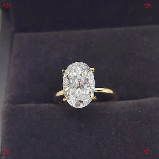 Bague solitaire ovale FVS1 de 2,5 carats, bague de fiançailles en or jaune avec diamant certifié, bague en diamant créée en laboratoire sans conflit.