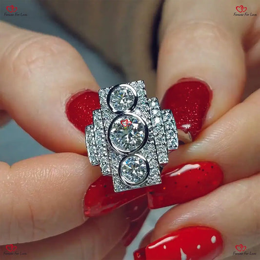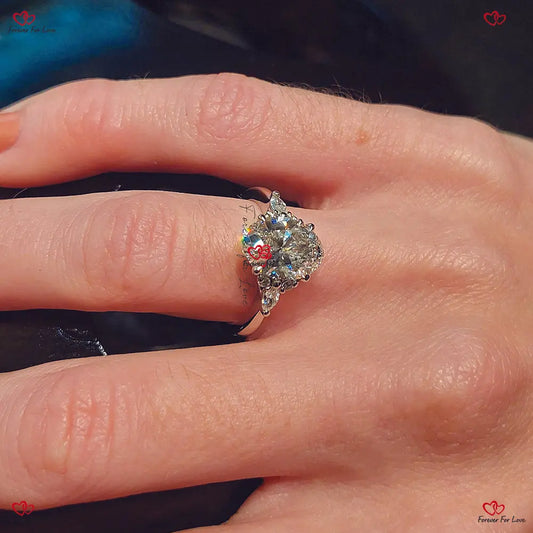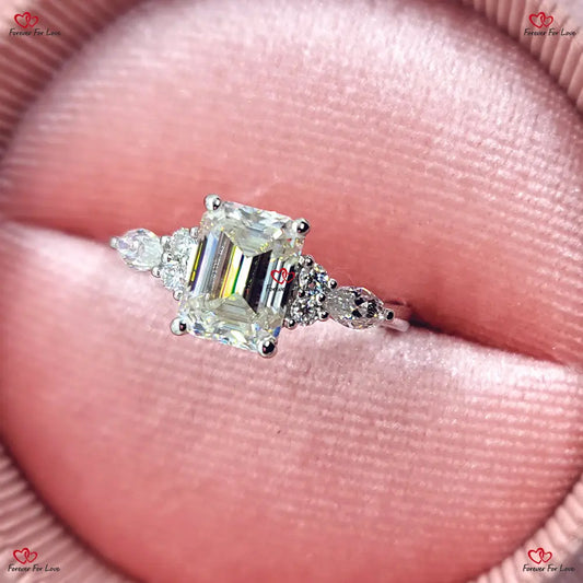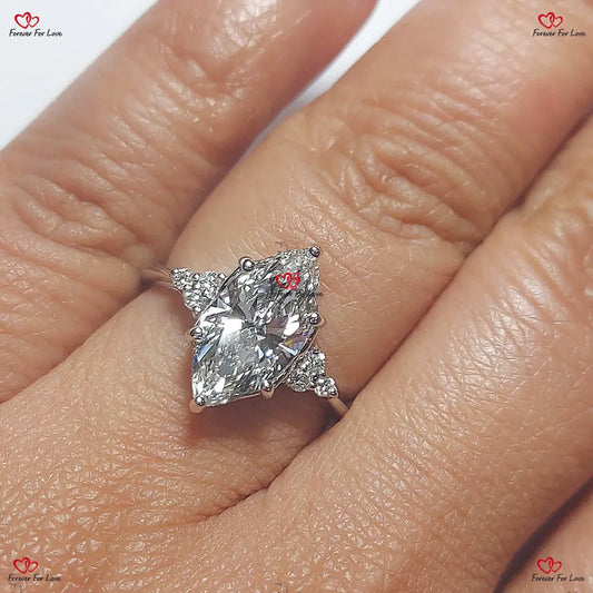 Bague de fiançailles vintage avec diamants taillés en laboratoire et pierres latérales rondes et en forme de poire