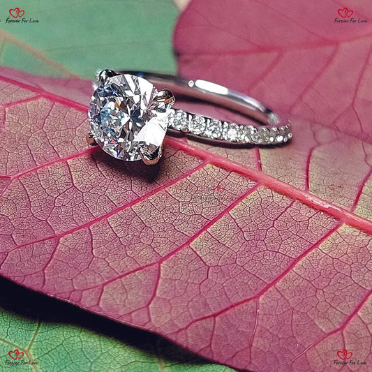 Bague de fiançailles en or blanc massif avec diamant IGI taille brillant rond cultivé en laboratoire - Bague de promesse vintage
