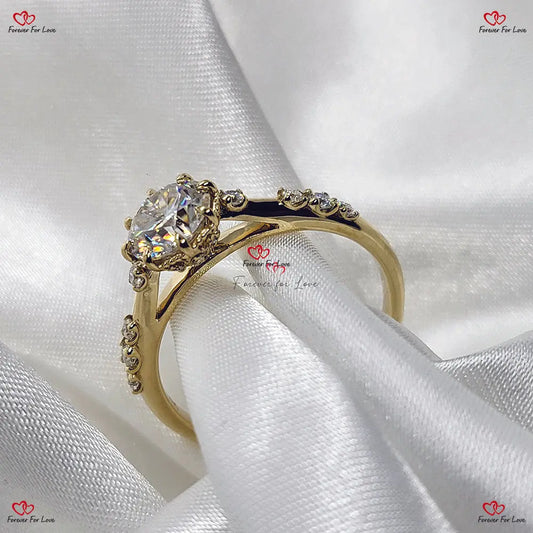 Bague de fiançailles unique en or massif avec diamant ovale vintage - Diamant de laboratoire F VS1 certifié IGI