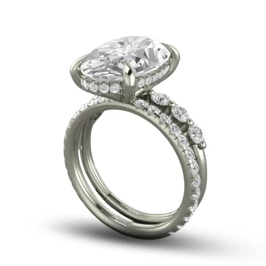 Alliance incurvée avec moissanite vintage et diamants taille marquise