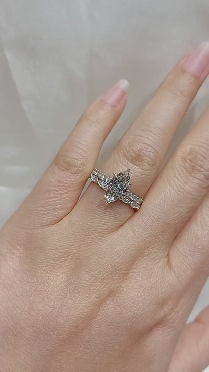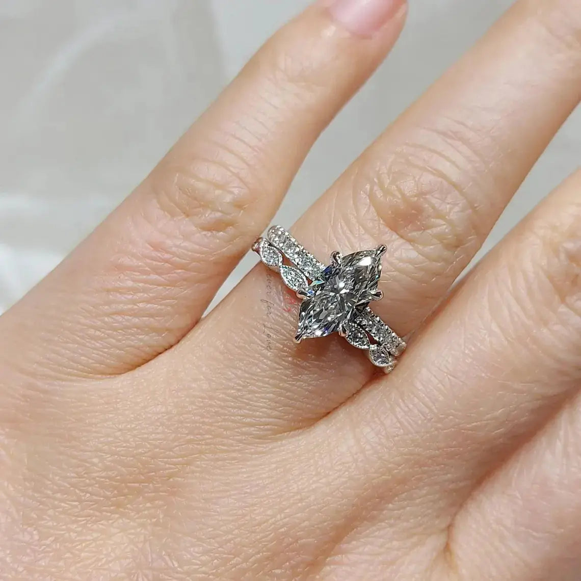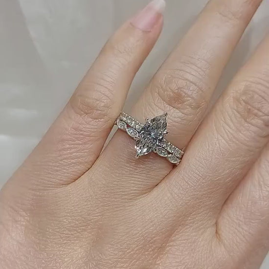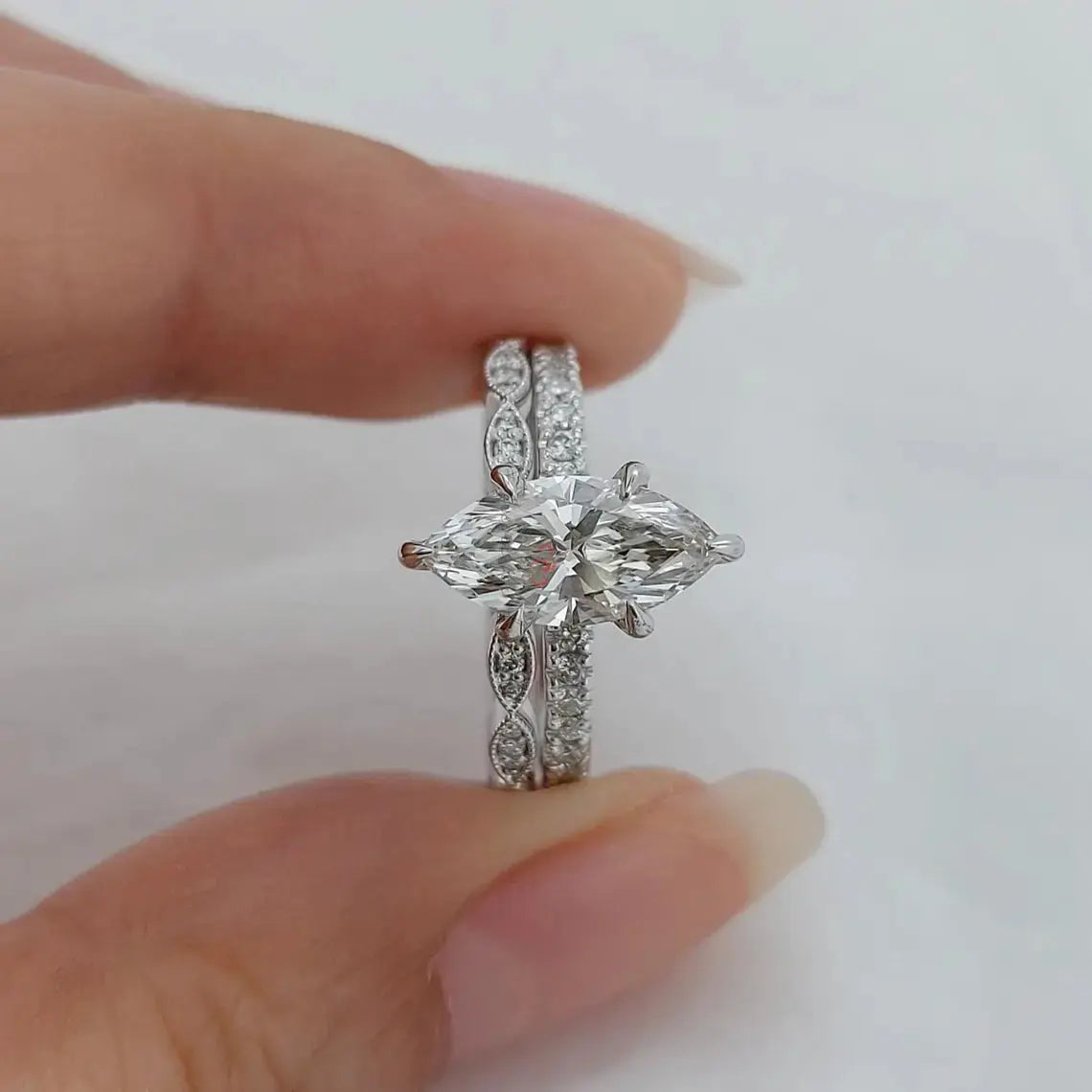 1.5 Carat Marquise Moissanite Diamond Engagement Ring Set