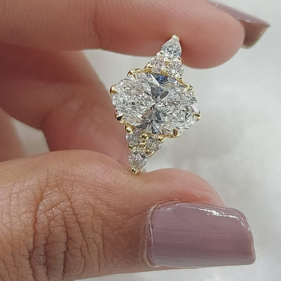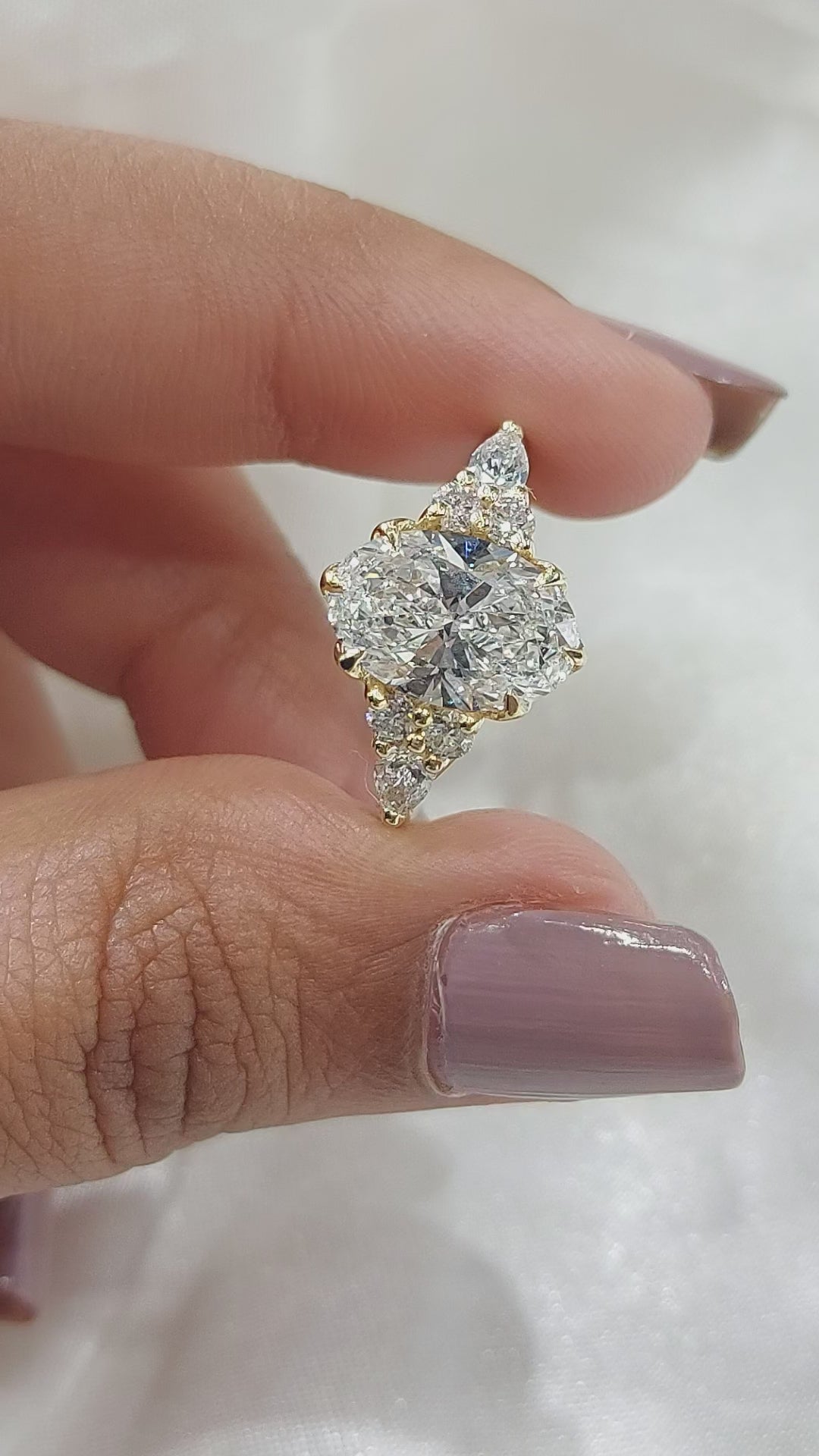 1.5 Carats Oval Diamond engagement ring unique Cluster Yellow gold engagement ring