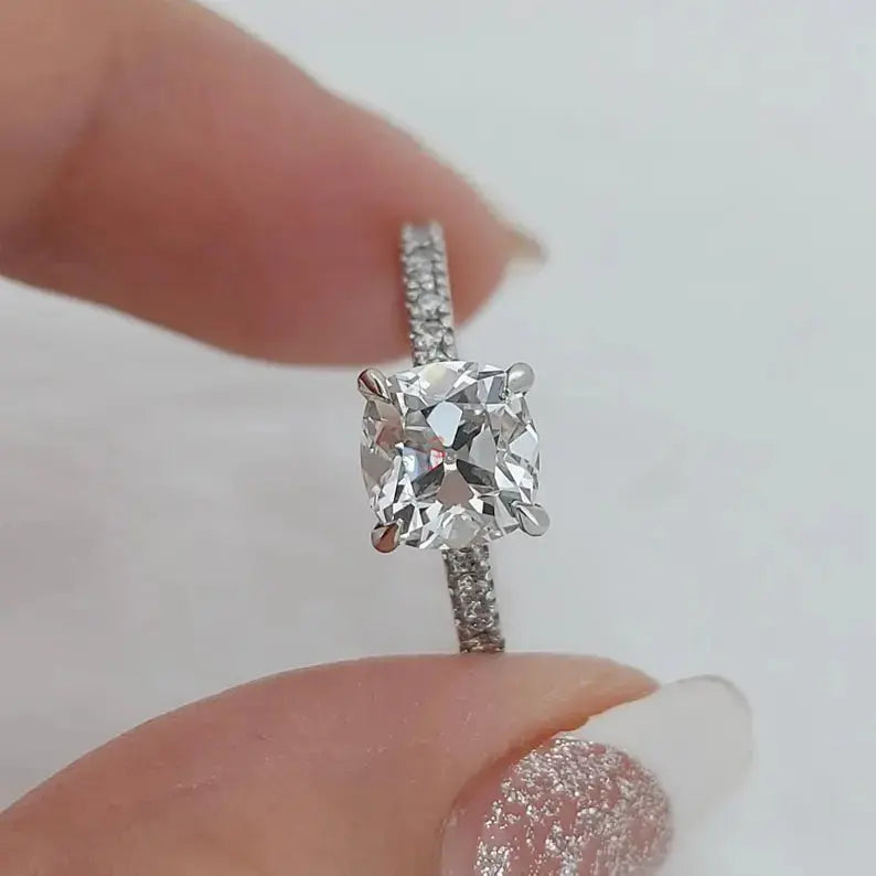 A timeless tribute to vintage elegance with a modern ethical twist — our 1.5 Carat Cushion Old Mine Cut Lab Grown Diamond Engagement Ring is where heritage meets sustainability.