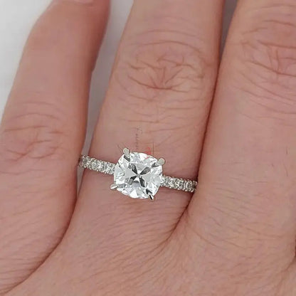 1.5 CT Cushion Old Mine Lab Grown Brilliant Cut IGI Diamond Engagement Ring