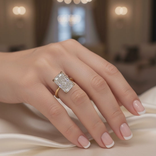 10 carat F Color VS1 Clarity IGI Certified Elongated Radiant Cut Lab Grown Diamond Ring
