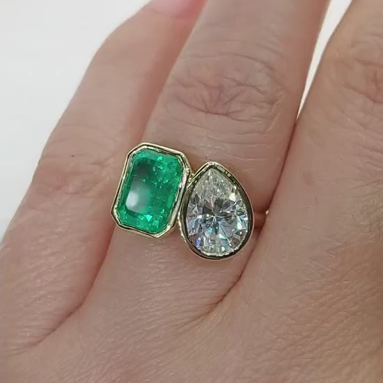 Dainty Emerald & Baguette Diamond Two Stone Ring