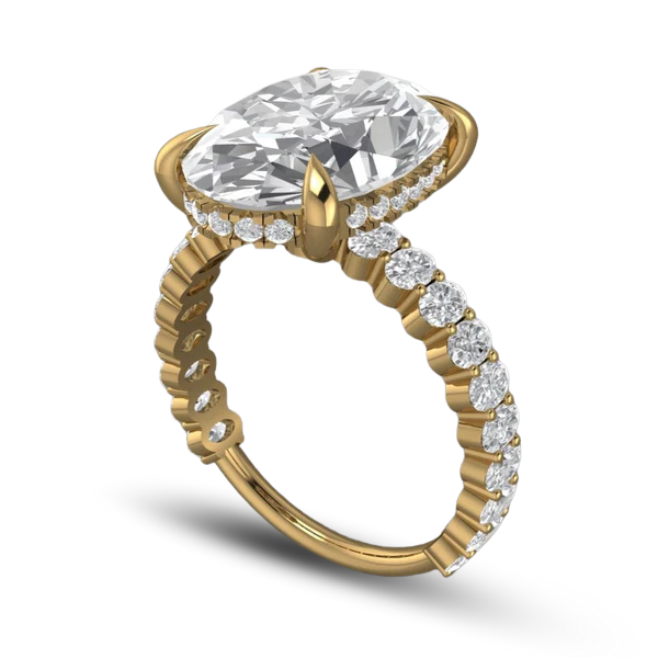 • Center Stone: Oval-cut diamond for a sleek, elongated appearance