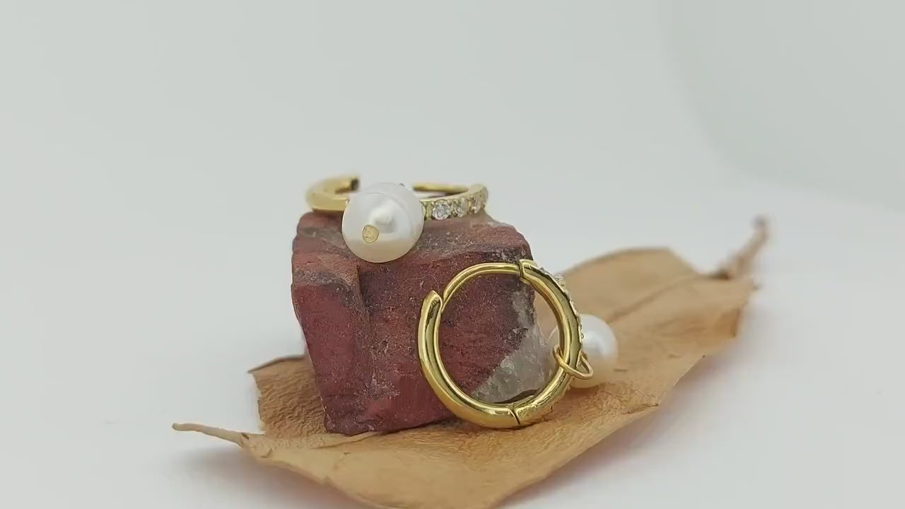 Boucles d'oreilles créoles en perles des mers du Sud - Boucles d'oreilles créoles de mariée avec grosses perles ovales