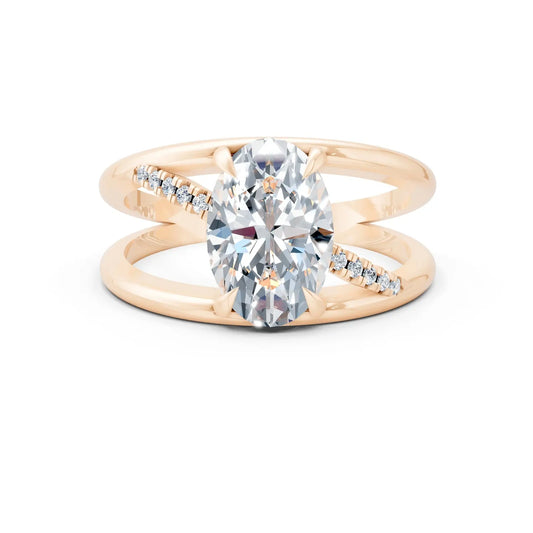 Oval Center Stone with Split Dual Band and Tension Setting Cross Pave Engagement Ring