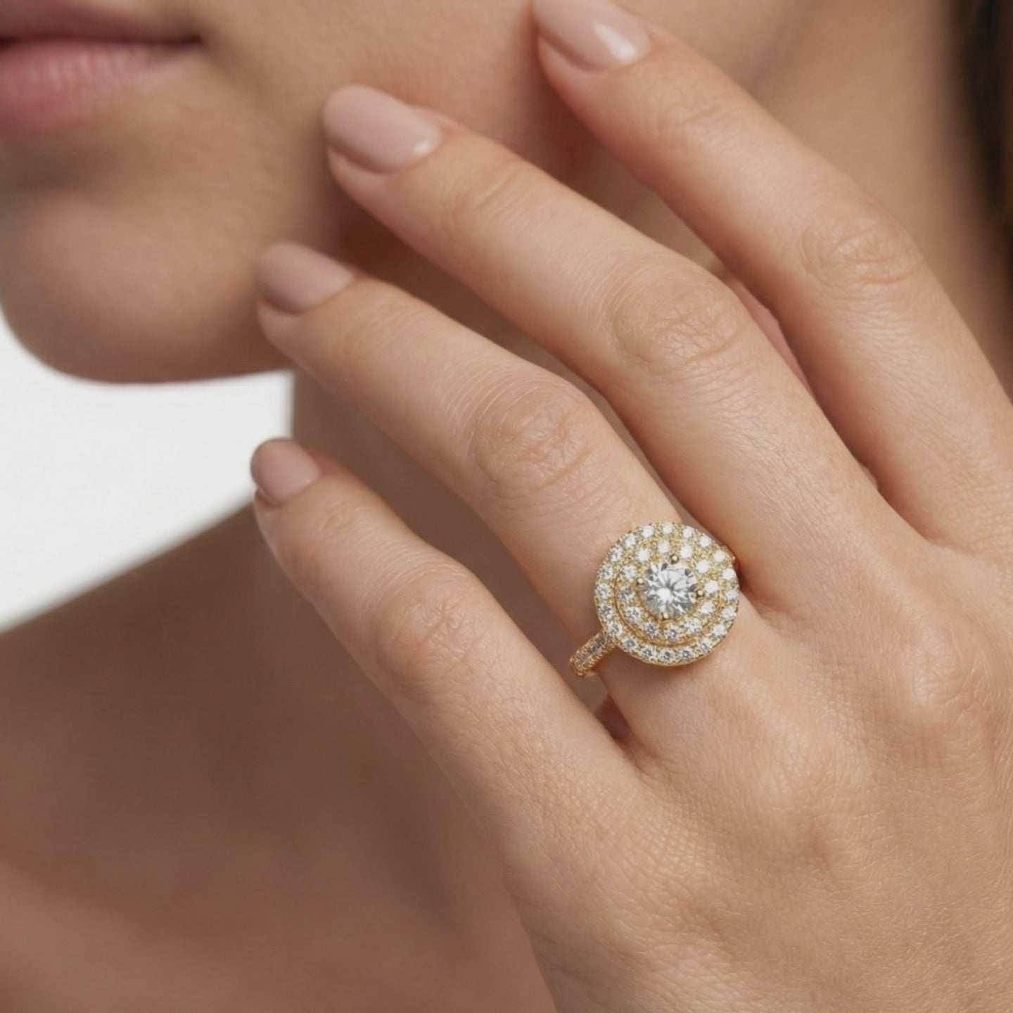 - Design: Double Halo design with a modern setting, offering maximum sparkle and elegance
